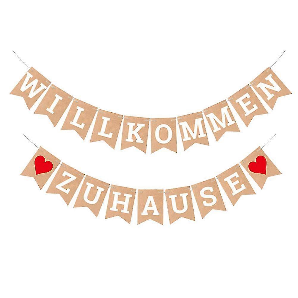 Willkommen Zuhause Printing Bunting Family Gathering Party Swallowtail Banner Heart Printing Garland Kraft Paper Dovetail Shape Flag Party Supplies De