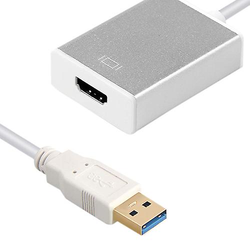 USB audio/video converter uses an available USB port on your computer to connect an HDTV, monitor, or projector with HDMI-compatible.Adds an additional display when the other video ports on your computer are occupied. An HDMI-compatible cable (sold separately) is required.USB 3.0 to HDMI-compatible adaptor leverages superspeed USB 3.0 bandwidth up to 5 Gbps for the best performance.Functions like an external graphics card to deliver smooth high definition video to your HDTV or monitor.Supports video resolutions up to 2560 x 1440 with HDMI-compatible. Supports flawless audio pass-thru for Dolby TrueHD, DTS Master Audio, and more.Backwards compatible with USB 2.0.Portable USB to HDMI-compatible adapter with a bonus travels easily in a laptop bag.Simple installation with drivers and user guides on the included CD or available for download.Extend the display of a laptop to a monitor or mirror screens for a presentation on a projector.Supports multiple monitors with additional adapters. No external power required with USB bus power for Windows, compatible for Windows 10/8.1/7/Vista/XP.Monitor MultitaskingThe USB 3.0 to HDMI-compatible adapter is an easy way to connect a display with HDMI-compatible to a computer with an available USB port.Add a monitor to a computer without HDMI-compatible or add an additional display when the other video ports on your computer are occupied.Arrange the connected monitor in primary, extended, or mirror mode. Connect a display with DVI using the included HDMI-compatible to DVI adapter for videoonly. Create more space around your desktop by connecting a 3 feet USB 3.0 extension cable.Important NotesSeparate cable required - An HDMI-compatible cable is not included.Not bi-directional - Adapter only operates from USB to HDMI-compatible.Smooth high clarity video - Minimum i5 Core 2+ GHz CPU to prevent video lag.Compatibility: for Windows: 10/8.1/8/7 (64/32 bit) XP SP2 32 bit.Type: AdapterMain Color: WhiteInput: USB 3.0 MaleOutput: HDMI-compatible FemaleMaterial: Aluminium Alloy Shell, PVC, Copper Core, 24K Gold PlatedVideo Resolution: up to 2560x1440 (HDMI-compatible)Audio Support: 2 Channel, LPCM (HDMI-compatible only)Supports hot swapping.Supports extensions and copy modes.Length: 125mm/4.92" (Approx.)Notes:Due to the light and screen setting difference, the item& 39;s color may be slightly different from the pictures.Please allow slight dimension difference due to different manual measurement.Package Includes: 1 x USB 3.0 to HDMI-compatible Adapter1 x CD Driver