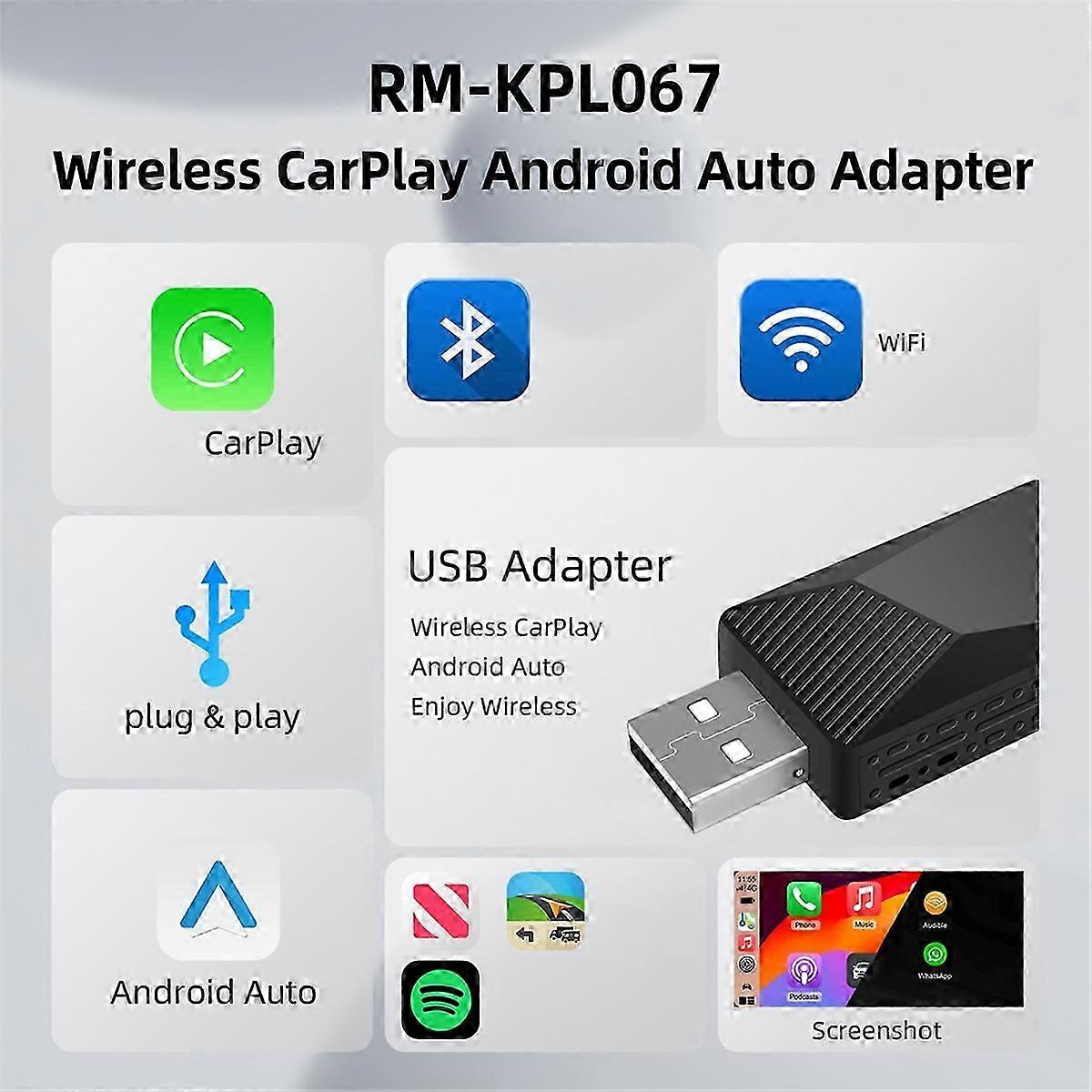 Possibly the 2-in-1 CarPlay Android Auto Adapter Wireless CarPlay, Convert factory wired CarPlay to wireless, Support ,GPS Navigation and so on. Wireless Android Auto, Convert wired Android Auto to wireless, Support Assistant, GPS Navigation and so on Plug and play, Plug in our product to the USB port with data transmission, Search the Bluetooth name and allow all request. 5GHz Wifi transmission, the most stable solution for the phone connection. OTAupgrade, if have any problem you can submit the feedback and we release the new software Great Compatibility. Right nowcompatible with 99percent of cars on the market with wired CarPlay and Android Auto Phone OS Version Wireless CarPlay need iOS 10 and above Wireless Android Auto need Android 11 and above ,equipped with 5Ghz wifi Colour:Black Material:ABS Package Contents: 1 x Wireless CarplayandAndroid Auto Box Only the above package content, other products are not included. Note: Light reflection and different displays may cause the color of the item in the picture a little different from the real thing. The measurement allowed error is 1-3cm.