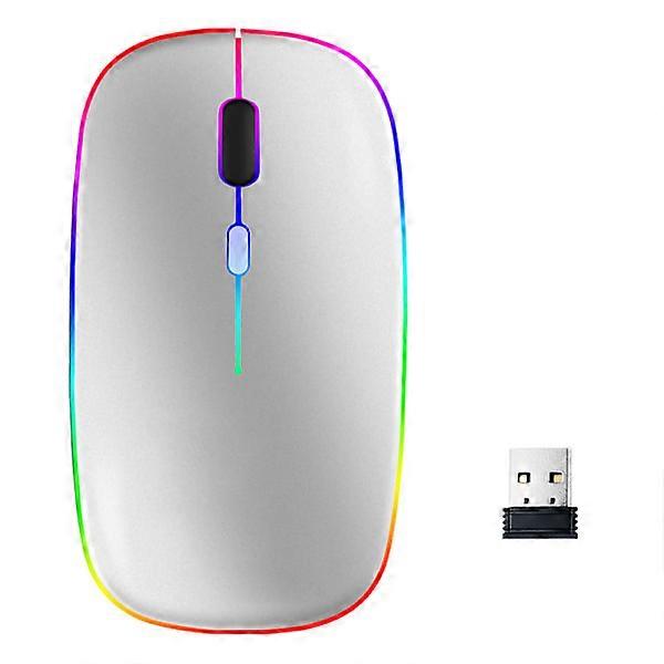 Wireless Computer Mouse with RGB LED Dual Mode Bluetooth/Wifi Silver Sølv
