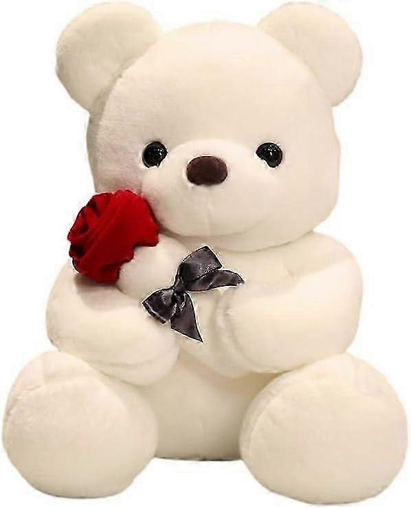Wiztex Teeddy Bear Plush Toy 23cm Red Rose Fabric Teddy Bear Black Button Eyes Smiling Teddy Bear