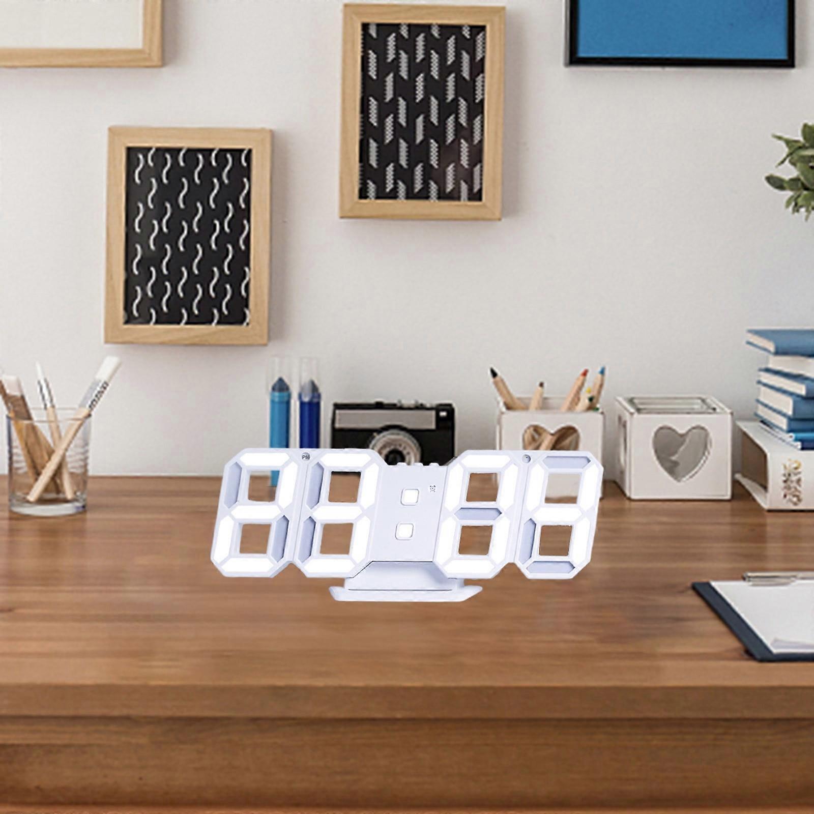 WJSXC Digital Alarm Clock Automatic Photosensitive Digital Clock 3 D Electronic Clock Multi-function Mount Dual-purpose LED Clock White Frame White