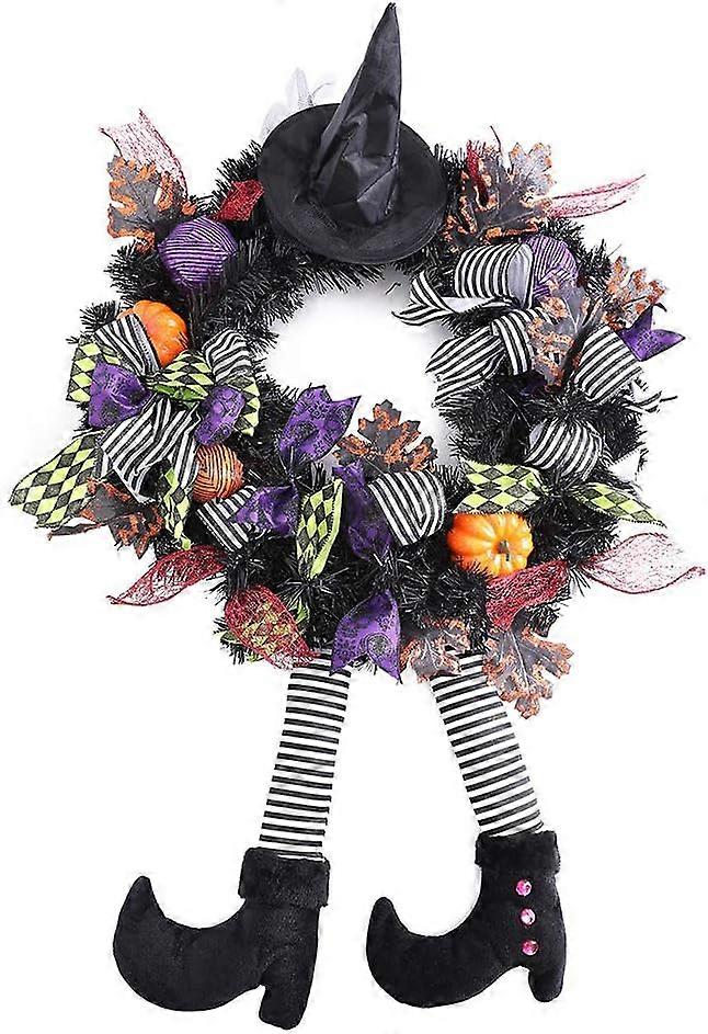 wlflash Happy Halloween Wreath for Front Door Decoration with Skeleton Artificial Bone Orange Ornaments Maple Leaf for Party Decor (Black and Orange 2