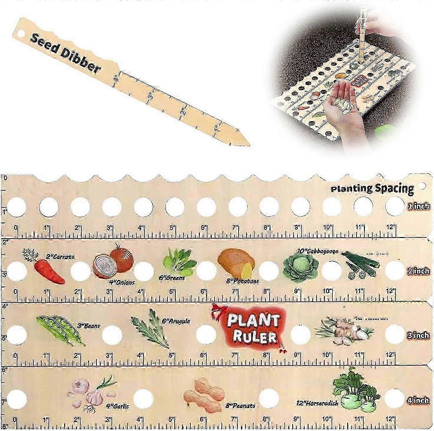 Wooden Plant Ruler With Seed Dibber, Seed Spacing Ruler With Holes, Seed Planter Tool For Precise Spacing, Sowing Portable Garden With Planting Guide