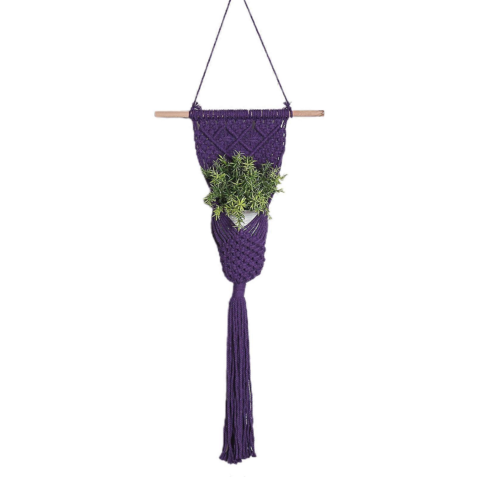 Wovens Cotton Rope Handwoven Wall Hanging Flower Container for Kids Girl Room Craft Decoration Home Bedroom Accessories Purple