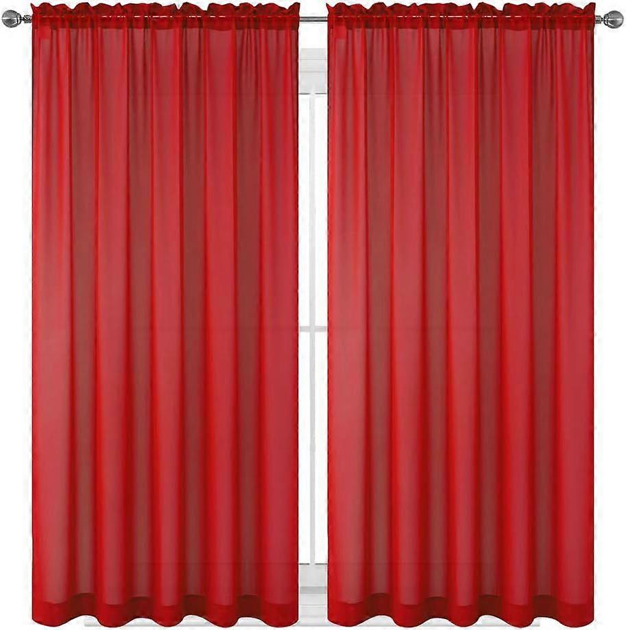 WPM Red Color Sheer Curtains 58" Wide x 63" Long 2 Panels Livingroom Window