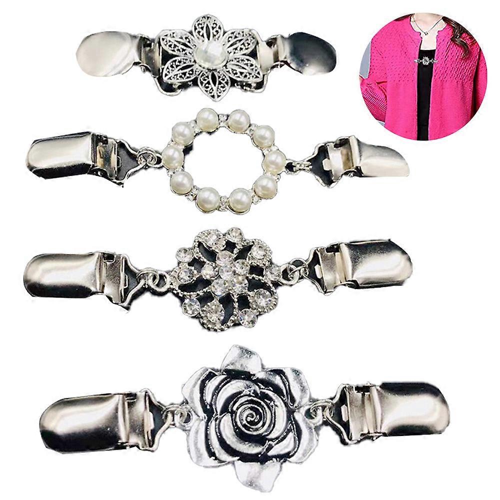 Wuhing-SJ-Style 2 4 Pieces Vintage Sweater Shawl Clips Retro Cardigan Collar Clips Dress Shirt Brooch Clips For Women Girls Wearing, 4 Styles