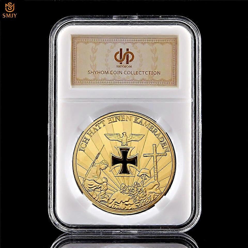 WWI&WW2 Ich Hatt Einen Kameraden Germany Niemals Vergessen Gold Challenge Token Commemorative Coin Meda Collection W/Coin Holder