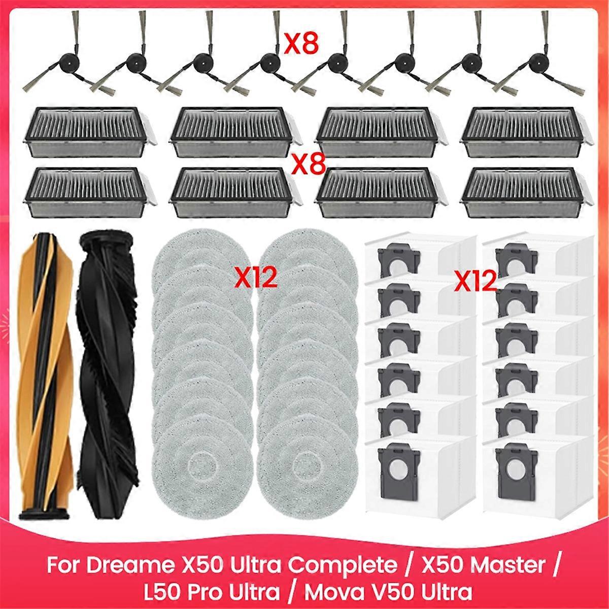 100% new and high quality Made of high-quality materials, more Side brush allows your vacuum cleaner to reach into for a more thorough cleaning,Filter filters fine dust to reduce dust, pollen and other from penetrating into the air you breathe. Uniquely designed brushes with rubber treads to adapt to different floor surfaces that remove everything from small dust to large deposits. As part of normal maintenance, it can be easily removed and replaced,It is best to replace spare parts every 2 to 3 months to keep the machine running at its best performance Color: As shown Material: plastic Package Contents: 1 set x roller brushes 8 x side brushes 8 x filters 12 x rags 12 x dust bags Only the above package content, other products are not included. Note: Light reflection and different displays may cause the color of the item in the picture a little different from the real thing. The measurement allowed error is +/- 1-3cm.