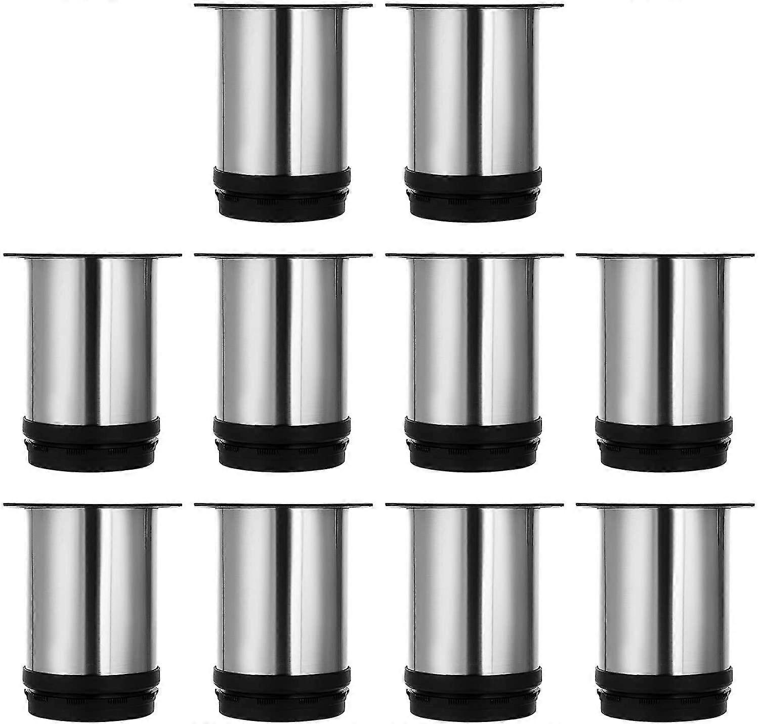 xceedez set of 8 adjustable furniture legs 80mm height cabinet legs, round brushed stainless steel furniture feet sofa leg table feet, adjustable hei