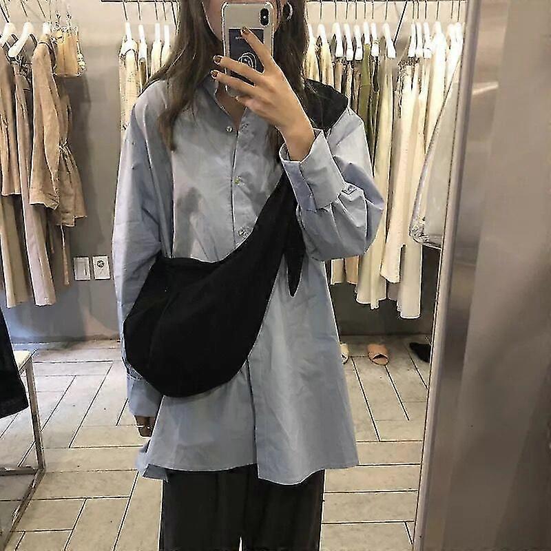 Xianrenge Large-capacity Canvas Shopping Bag Casual Women's Shoulder Bag Solid Color Travel Tote Bag Student Books Bag Ladies Hobo Bags