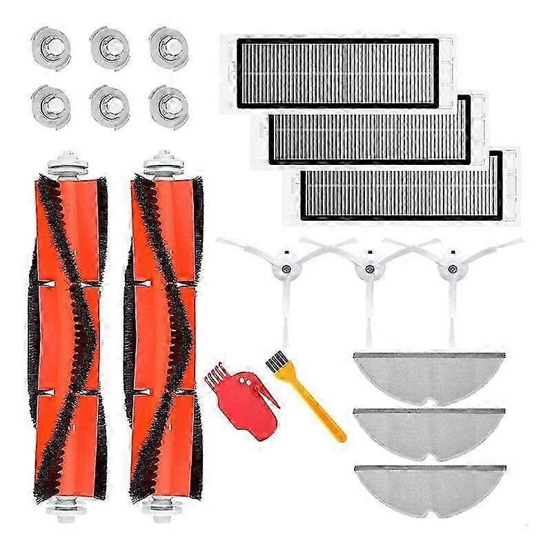 [Wide compatibility] These for Xiaomi spare parts for robot vacuum cleaners are suitable for Xiaomi robot vacuum cleaners. Perfectly for Xiaomi Roborock S50 S55 S6 S5Max vacuum cleaner.[HEPA high efficiency filter] Highly efficient filter materials are made of high-strength filter material of grade E11 and environmentally friendly materials, can block 99% with a diameter of only 10 micrometers dust, mites, allergens and dirt.[More effective dirt removal] These brushes can dig deep into the corners and edges to remove more dirt, dust and hair from the floor. Easy to disassemble and replace during routine maintenance, make your for Xiaomi cleaner and longer.Simply remove your old filter and put this brand new one in! Fits perfectly with precise molding.Recommended to replace every 3 months for best performance. When you frequently change filters, your filter will not be dirty and clogged, help clean your home more efficiently.Colour:White+black+orangeMaterial:plasticPackage Contents:2 x Roller brush3 x HEPA filters3 x Side brushs3 x Mop cloths6 x filter cores2 x Cleaning toolOnly the above package content, other products are not included.Note: Light shooting and different displays may cause the color of the item in the picture a little different from the real thing. The measurement allowed error is +/- 1-3cm