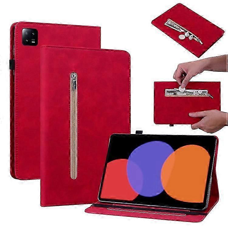 Compatible For Xiaomi Pad 6 Auto Wake and Sleep Stand Leather Case Zipper Pocket Tablet Cover with Card Slots