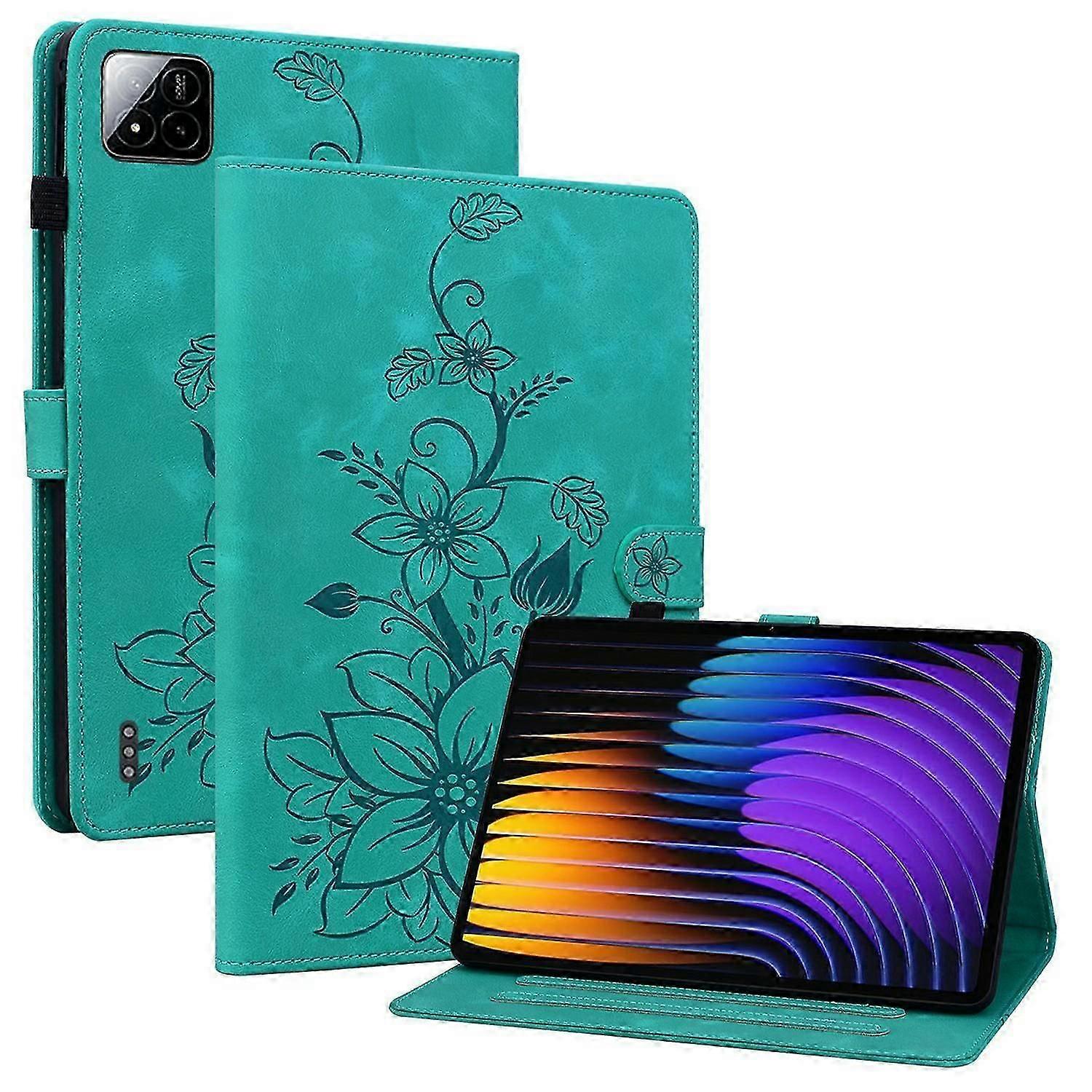 For Xiaomi Pad 7 Pro Pad 7 Case Lily Flower Imprint Card Slots Leather Tablet Cover -