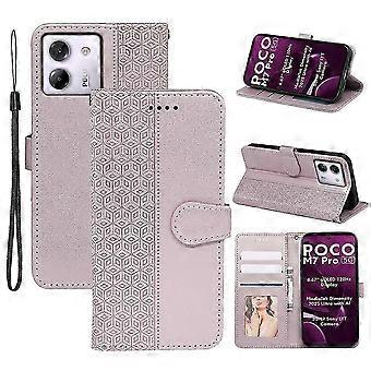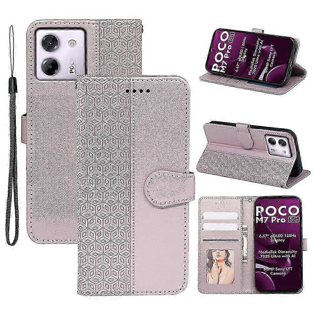 For Xiaomi Poco M7 Pro 5G Case Anti Scratch Splicing Imprinted Rhombus Leather Phone Cover - Green