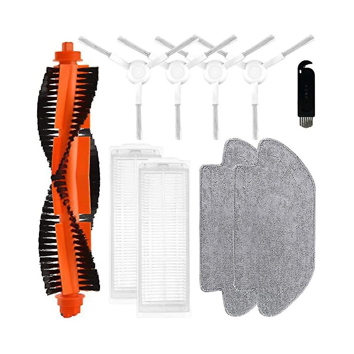 and high qualityMade of high-quality materials, more durableSide brush allows your vacuum cleaner to reach into for a more thorough cleaningFilter filters fine dust to reduce dust, pollen and other from penetrating into the air you breathe.Uniquely designed brushes with rubber treads to adapt to different floor surfaces that remove everything from small dust to deposits.As part of normal maintenance, it can be easily removed and replacedIt is best to replace spare parts every 2 to 3 months to keep the machine running at its best performanceColour:As ShownMaterial:plasticPackage Contents:1 x roller brush4 x side brush2 x hepa filter2 x mop cloth1 x clean brushOnly the above package content, other products are not included.Note: Light reflection and different displays may cause the color of the item in the picture a little different from the real thing. The measurement allowed error is +/- 1-3cm.