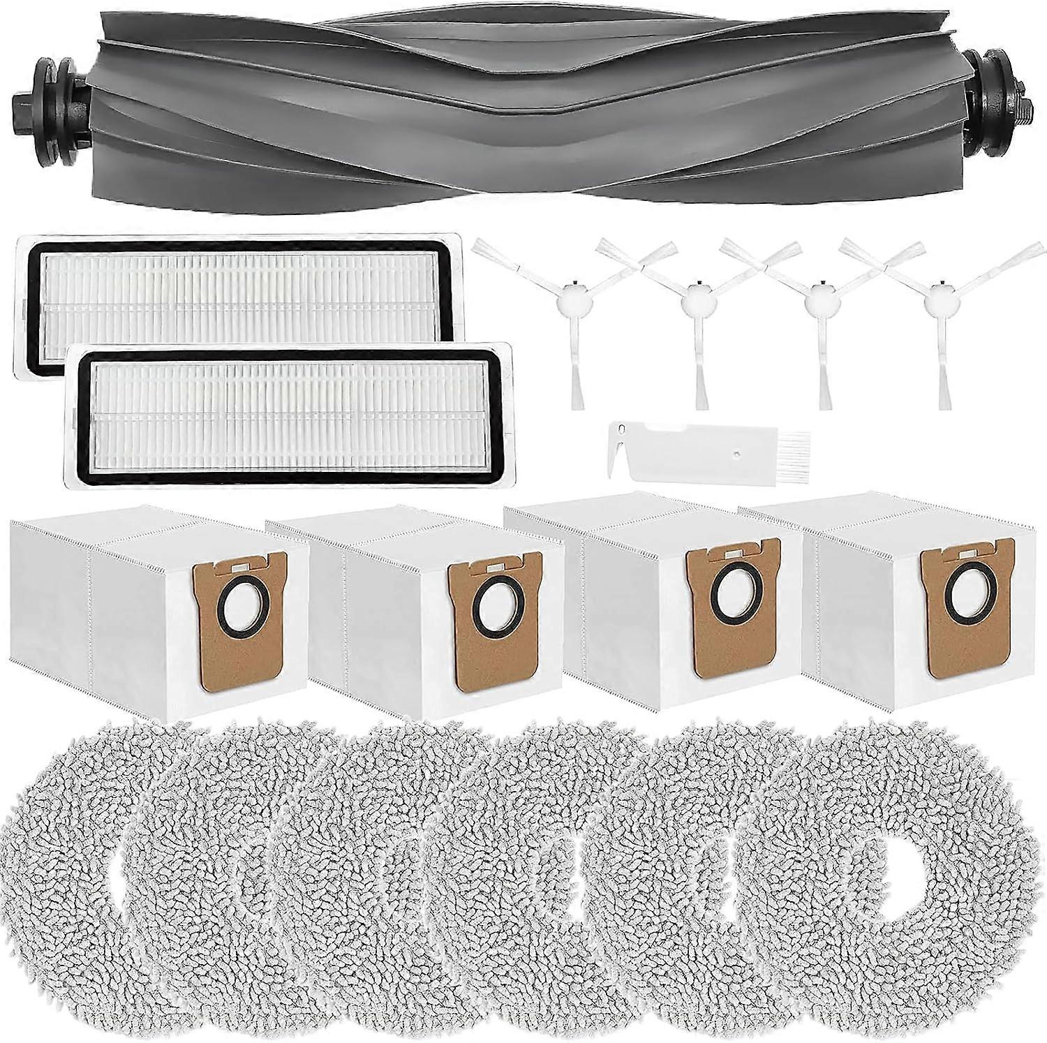 Compatible Models: Our high-quality replacement parts for Xiaomi X20+, X10+, for Dreame L10s Pro Gen 2, L10s Ultra, L10 Ultra, L10 Prime, S10, S10 Pro, S20, S20 Pro, and the high-quality accessory set can replace the worn accessories to keep your vacuum cleaner in good condition. Clean floor stains: The main brush is made of high-quality material, providing long-lasting cleaning performance and wear resistance. The cloth effectively cleans dust and stains on the floor. The side brush can easily remove dust and hair from corners and edges. High-efficiency filter: The HEPA filter is composed of multi-layer filters, which can capture 99.97% of particles as small as 0.3 microns, remove indoor dust, pollen, odors and pet hair, and exhaust fresh air to keep indoor air fresh. . Large-capacity dust bag: The dust bag has a large capacity and can effectively remove dust for 60 days. Reduce the frequency of replacing the dust bag. dust and improve the efficiency of use. Replacement frequency: In order to keep the vacuum cleaner in the best condition, we recommend replacing the accessories every 3 to 5 months. Package includes: 1 * roller brush + 6 * mop cloths + 4 * dust bags + 2 * filters + 4 * side brushes + 1 * cleaning brush.