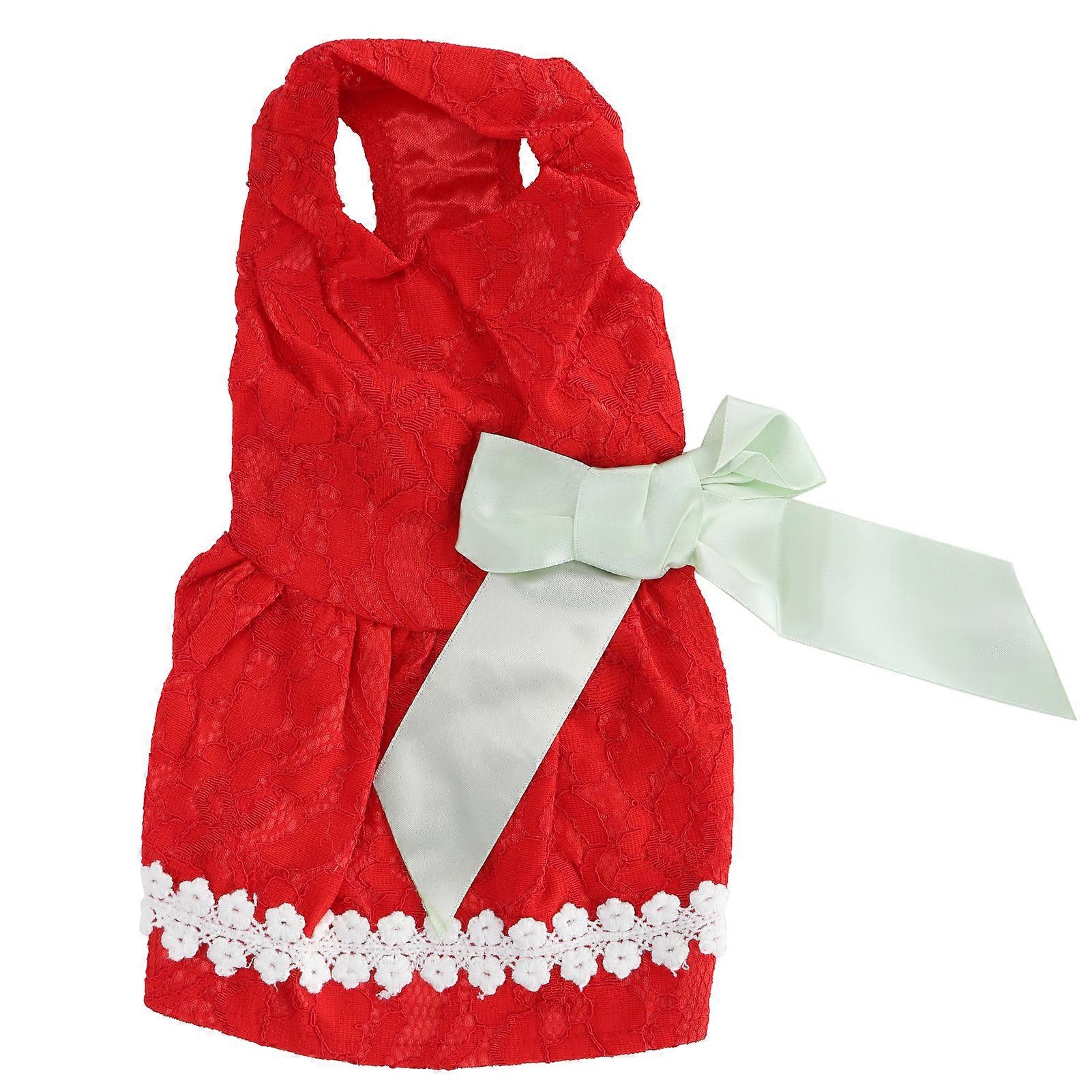 XZD226 Red S Pet Summer Cute Clothes Girl Dog Polyester Sleeveless Skirt Dresses with Bow on Back