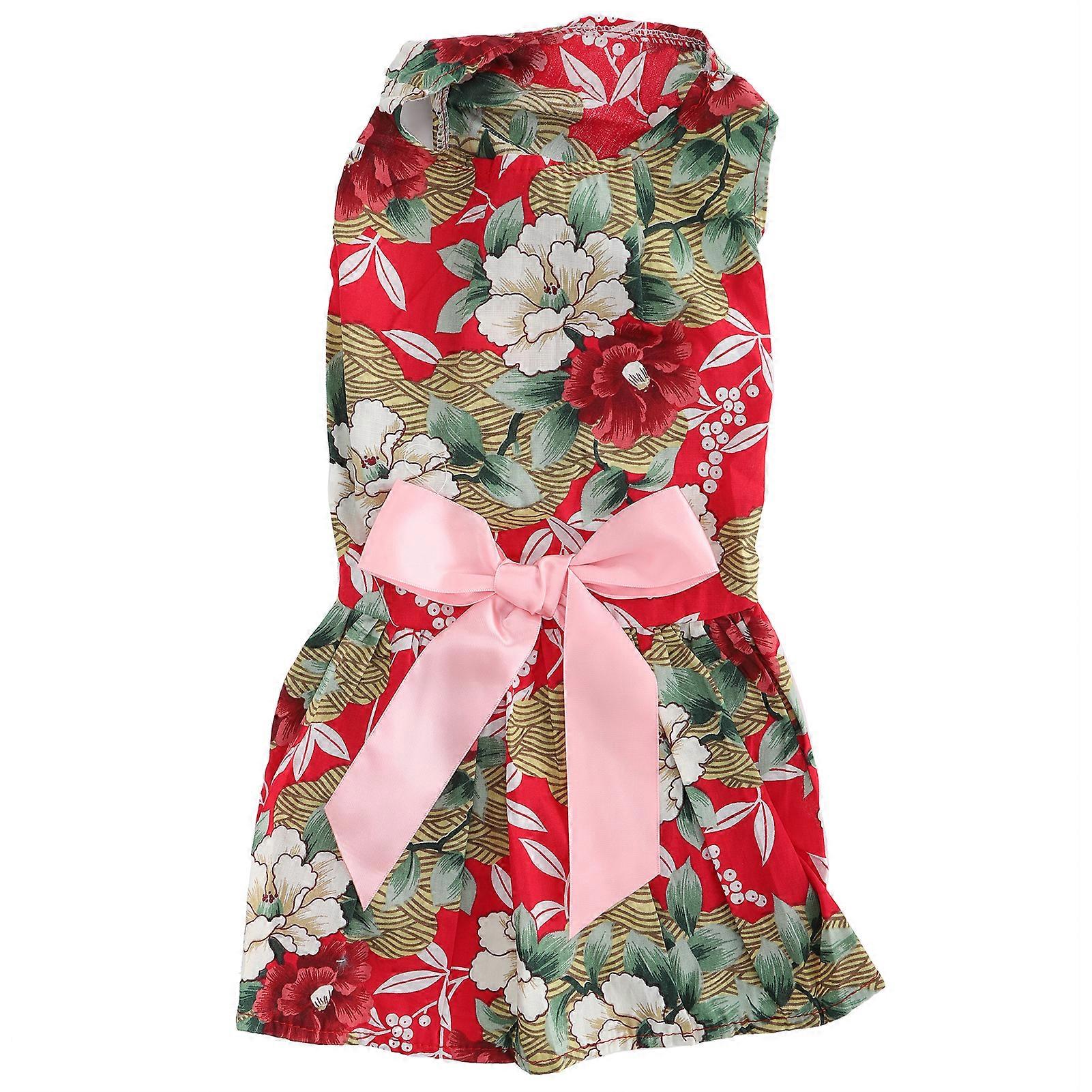 XZD300 Green Red M Pet Summer Cute Clothes Girl Dog Polyester Sleeveless Skirt Dresses with Bow on Back