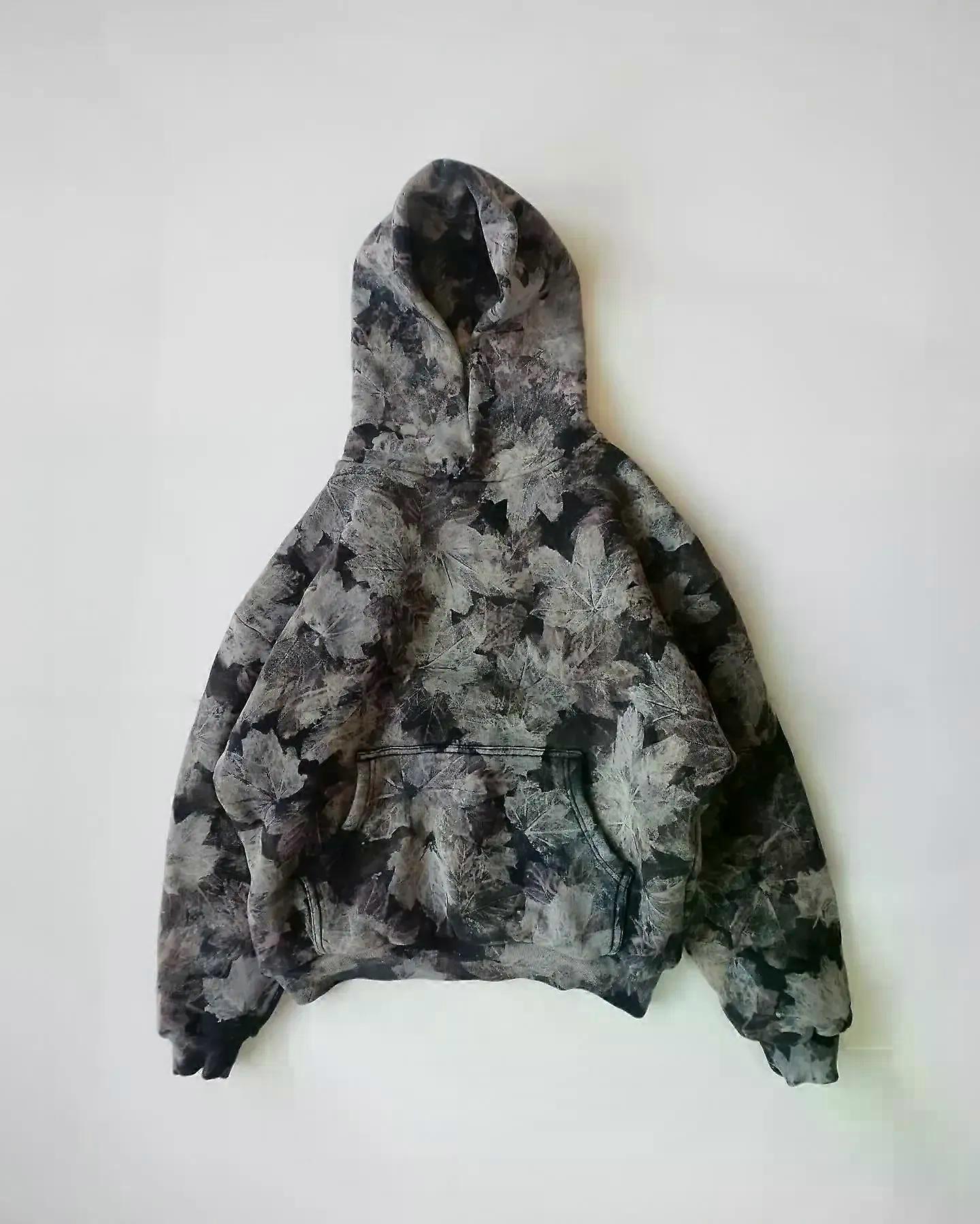 Y2K Retro Men Pullover Camouflage Leaf Pattern Hooded Sweatshirt High Street Hip Hop Streetwear Oversized Unisex Camo Hoodie