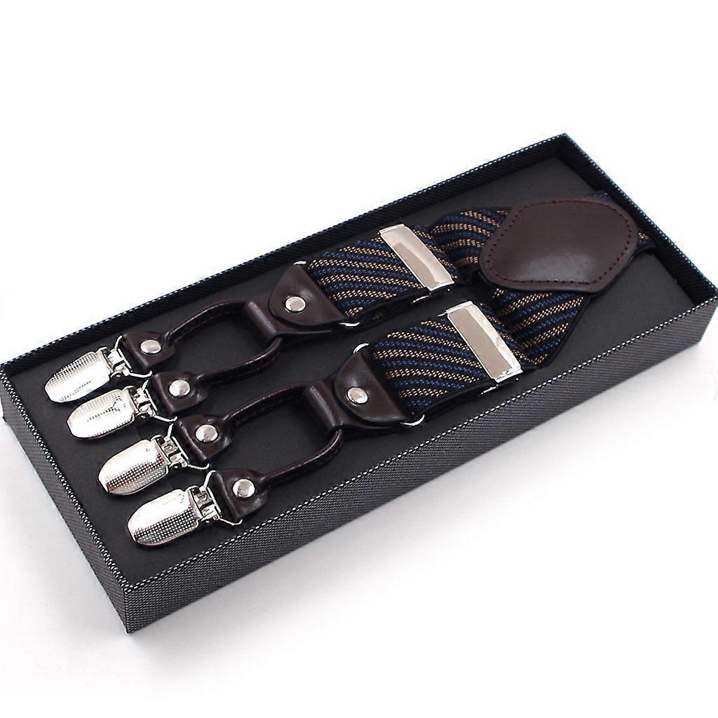 Men Stripe Y-Shape Suspender With Non-Slip 6 Clips Elastic Adjustable Pant Brace