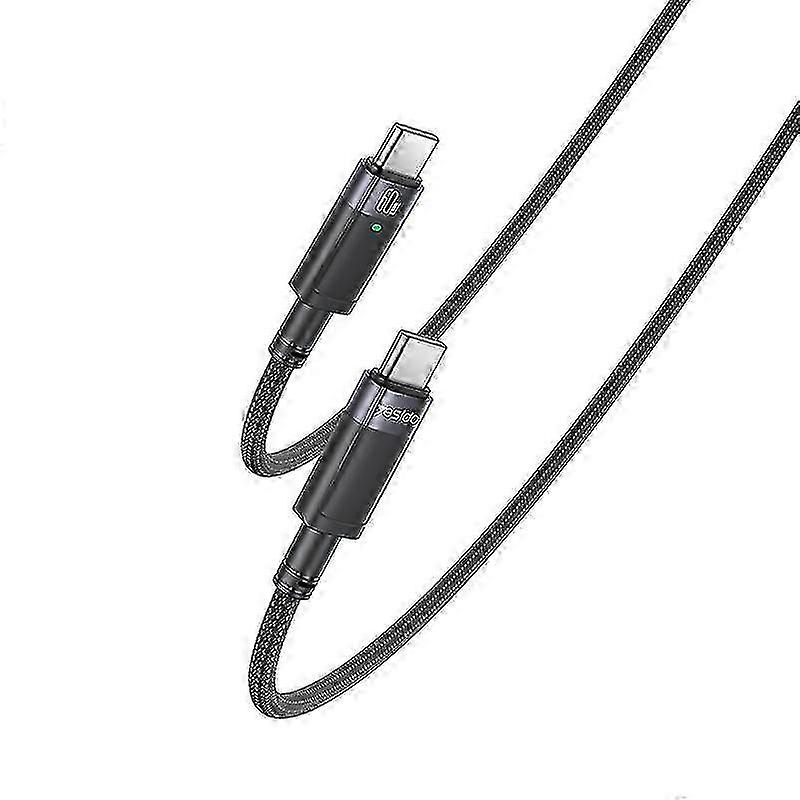 YESIDO CA160 1.2m 60W USB-C Type-C to Type-C Auto Power-off Charging Cable 1. Aluminum alloyandTPE terminals, integrated and durable. 2. 60W PD fast charging, 480Mbps data transmission rate. 3. Built-in intelligent power-off chip to prevent overvoltage and overcharging. 4. 178pcs copper wire cores with low resistance and strong conductivity. 5. Nylon braided wire, with good toughness and anti breaking and tensile resistance. 6. Intelligent power-off breathing light: - Plug in the power to charge, turn on the breathing green light - Fully charged green light remains on for 30 minutes, then power off and turn off the light - Automatically resume charging after 2 hours of power-off Parameter 1. Material: TPE and aluminum alloy and nylon braided 2. Function: charging and data transmission 3. Cable length: 1.2m 4. Output: 20V3A, 60W max 5. Transmission rate: 480MBs Note: Due to the light and screen setting difference, the item's color may be slightly different from the pictures. Please allow slight dimension difference due to different manual measurement.