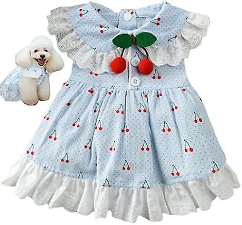 YOITEA Dog Dress Cotton Cherry: Cute Puppy Princess Dress Dog Party Clothes Puppy Summer Csotume Fashion Corgi Outfit Clothing Apparel