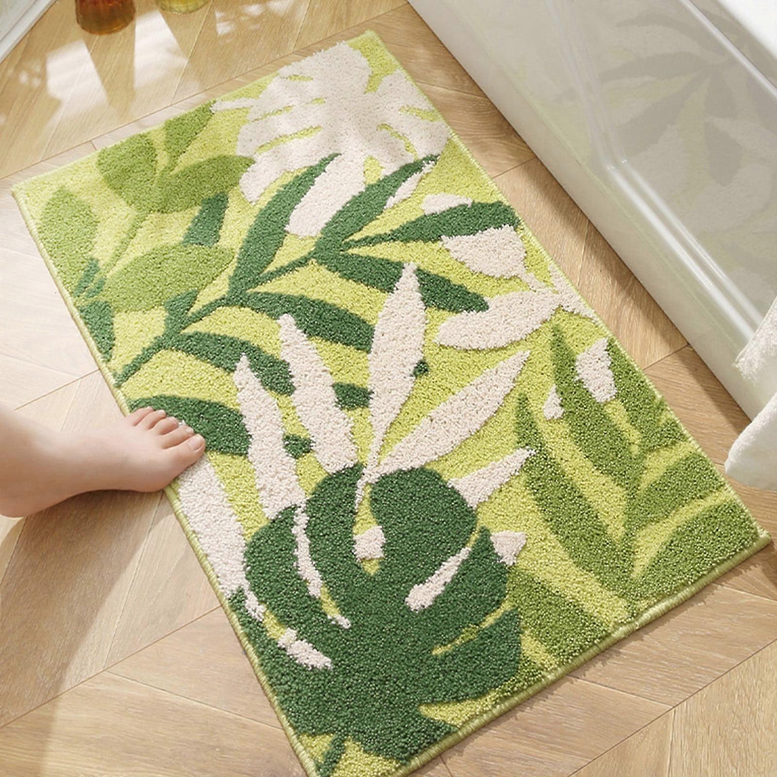 Yoloke Long Bathroom Rug - Sage Green Leaves, Microfiber, Water Absorbent, Non-Slip Back, for Wash Basin, Shower Floor, Bedroom Doormat