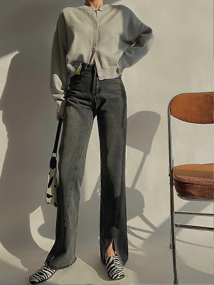 YOUGANG high quality Homemade Star High-set Fluorescent Lizard Skin Slant Placket Asymmetrical Jeans High Waist Slimming Straight Pants