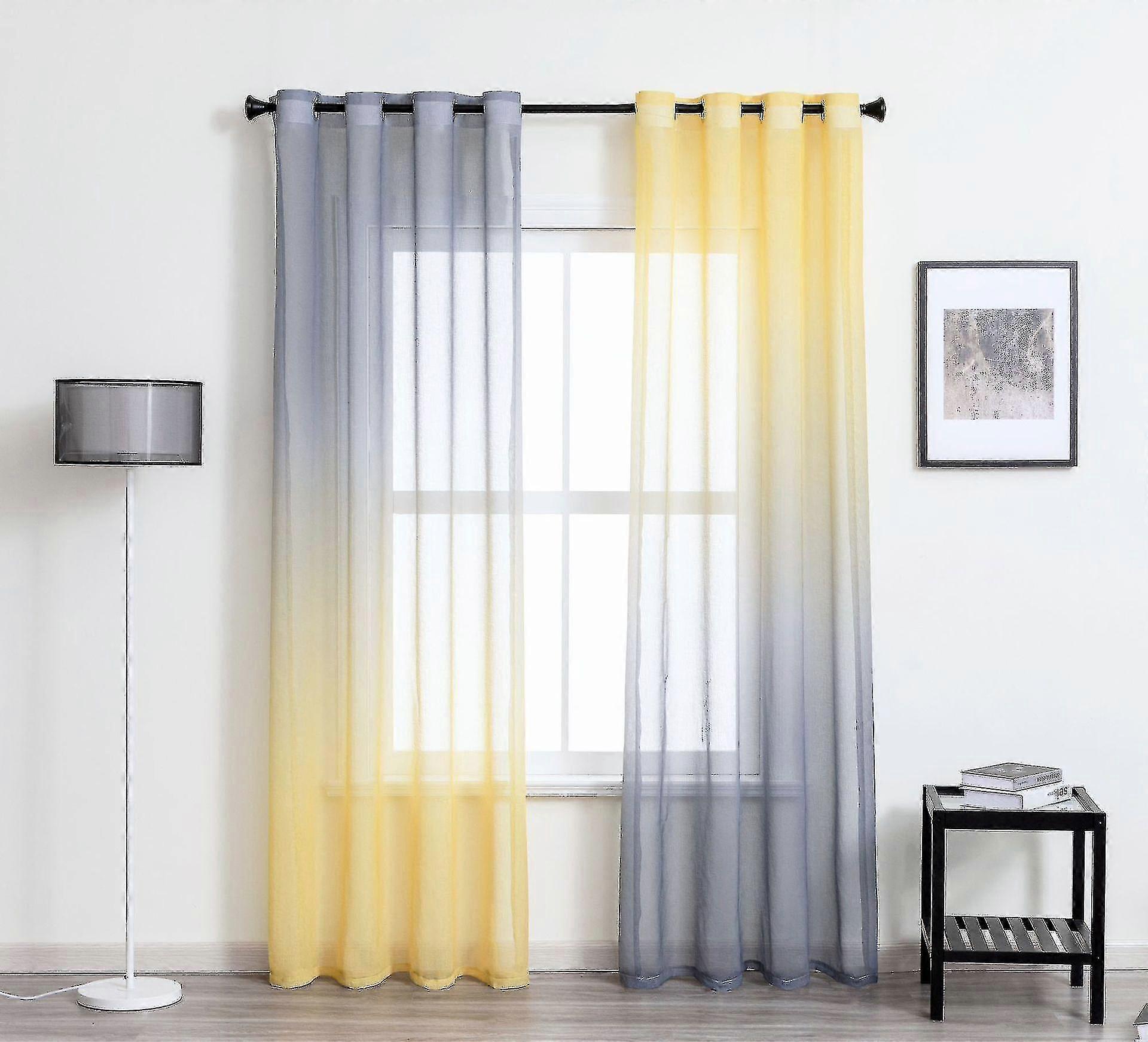 Quantity : 2 pieces Color: yellow gray gradient Product size: 100*260 cm Made of 100% polyester, transparent and flexible. The windows are beautifully decorated. Metal eyelets for hanging the money Material: Elegant sheer curtain in gradient color, perfect for modern living room and baby room. Sheer curtains are designed for minimalist and modern home decorating needs. Translucent privacy screen, beautify your home while protecting your private space Installation: Grommets fit most curtain rods on the market. The metal grommets allow the curtains to slide easily on the tracks Care: Can be washed and ironed at low temperature. If you want to wash them, please wash them with cold water and hand wash to keep the material always beautiful and suitable for your interior decoration, also recommend this product not to wash it too often. Produced by YOUGANG