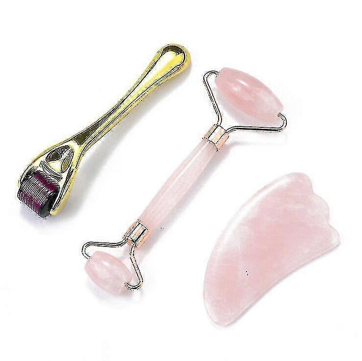 Advantages: Face-lifting roller---relieves muscle tension and lymphatic drainage; reduces facial puffiness and helps your skin look refreshed; tightens the skin, making it look hydrated and firm.Jade Face Roller: The home skin care facial massager tool is made of rose quartz. The rollers on the face and eyes are strong without creaking. The massage roller is very smoothThe beauty and skin care tools are packed in exquisite gift boxes. Including rollers, Gua Sha board and microneedles.Shaping board: not only can improve blood circulation, but also stone scraping can help muscle relaxCrystal roller massager: It can lift and massage the face. It can eliminate facial edema and help diminish fine lines.Beauty microneedles can brighten skin tone, lift and tighten. Use the smiling needle on the microneedle roller to stimulate the skin, help the active ingredients penetrate into the skin, and help absorb nutrients.Tip: You can put the jade roller and melon sand in the refrigerator, which will help eliminate morning puffiness and revitalize the skin.