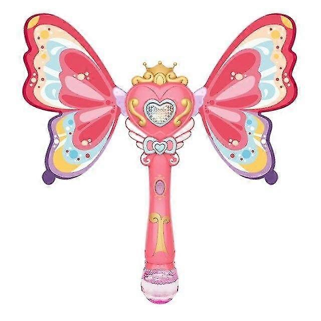 Girl Wings Bubble Stick Fairy Magic Wand Bubble Machine Automatic Watertight Glowing Kids Music Soap Bubble Gun Girl's Gift|BubblesPinkDescription[Bubble Toys for Kids] This princess bubble wand is made of nontoxic and durable ABS plastic. It is safe and CPSC complied, which makes best summer outdoor toys for all children over 3 years old.[Musical & Led Light Up] The automatic bubble machine blows out hundreds of colorful bubbles per minute. Your kids can't help dancing in the colorful bubble world.[Easy to Use & Kids Friendly] Simply install the batteries; Unscrew the diamond looking tank and refill it with bubble solution; Then screw it into the bottom of toy bubble blaster; Pressing the heart shaped button, you will see tons of bubbles fly out along with eye-catching flashing light and beautiful music. produce bubbles.[Great for Creating Atmosphere] This bubble blower is light weight and handheld. It will bring endless bubble-blowing fun for gatherings such as pool parties, birthdays, weddings, picnics, and any other activities you are hosting. It could also be a girls' theme party favor.Flashing Light & Lovely Music Greatly Attracts Kids Attention .Not fun enough with bubbles only? Eye-catching flashing light and cute music will thrill kids and pet alike This bubble maker also features pretty patterns and lovely colors to inject some vibrancy into your kids imaginative pretend play. Your little girl will definitely be high light of the party when showing up with this princess bubble wand.Light Weight & Low Sound, Great Indoor and Outdoor Fun . Its easy to carry around. Kids can play with this bubble blower in both indoor and outdoor. Cute bubble toys for children's parties, birthday parties, park, backyard, photo scenes, performance stages, wedding ceremonies, etc.Let Your Kids Have Fun and Feel the Magic in the Bubble GameThis bubble machine is definitely a great addition to your kids bubble games With powerful motor, it blows out thousands of bubbles per minute from the crown. The crystal ball will light up with lovely music. That will make your kids feel to be magical or be like a princess.Color: PinkMaterial: PlasticPackage Size: 31x 12 cmPackage Includes:Bubble Wand x 1