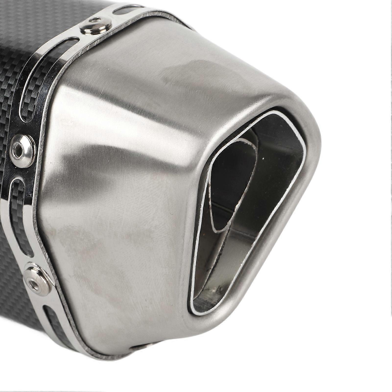 Feature: 1. Wide Application: Motorcycle muffler pipe can be used on dirt bikes, street bikes, scooters, ATVs, quad bikes and any other bikes with a tube diameter of 38‑51mm. 2. Light Weight: Motorcycle exhaust muffler pipe is light in weight and compact in size, greatly reduce overall weight for superior performance for maximum output. 3. High Quality Materials: The motorcycle exhaust silencer pipe is manufactured by premium stainless steel with high strength and excellent heat resistance. 4. Carbon Fiber Design: The motorcycle exhaust muffler pipe is specially designed with a carbon fiber style appearance, is a stylish and luxurious decoration for your vehicles. 5. Match to Use: 310mm exhaust muffler pipe features a stainless steel weld adapter which is allowed to be connected with 38mm ‑ 51mm tube (not included) for higher exhaust performance. Specification: Item Type: Motorcycle Exhaust Muffler Pipe Material: Stainless Steel Color: Carbon Fiber Style Fitment: For dirt bikes, street bikes, scooters, ATVs, quad bikes and any other bikes with a tube diameter of approx. 38‑51mm/1.5-2.0in. (Tip: This muffler can be used on most 38-51mm/1.5-2.0in in diameter motorcycles, not for all types of motorcycles.). Package List: 1 x Motorcycle Exhaust Muffler Pipe7 x Accessories