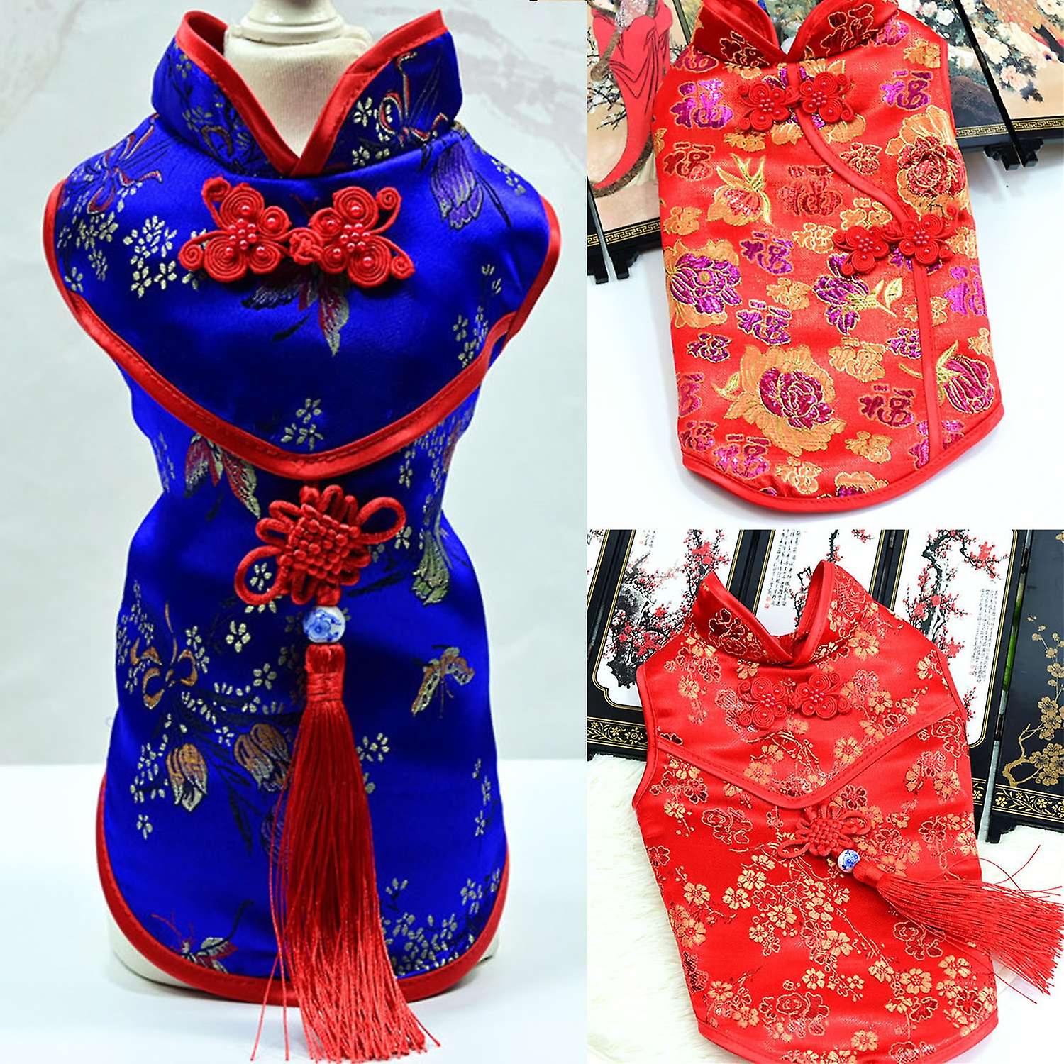 ZHOUBA Pet Tang Suit Floral Print Chinese Style Sleeveless Dog Cheongsam Shirt for Summer