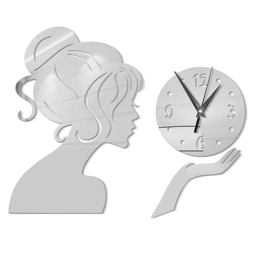 ZHOUBA Wall Clock Girl Mirror Sticker Acrylic Waterproof Decal Home Living Room Decor