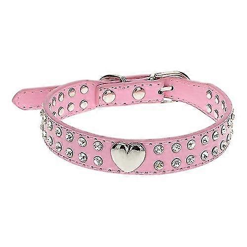 ZHOUBA 2 Rows Rhinestone Heart Studded Faux Leather Dog Collar for Small Medium Pet