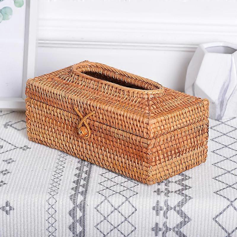 ZJH01 Restaurant Desktop Rattan Braided Tissue Storage Box Case, Size: L 1. Material: rattan 2. Can be used in the living room, kitchen, bedroom, car 3. Good quality and long service life 4. Dustproof and dirtproof, it is very convenient to replace paper towels 5. Dimensions: 19x13x11cm