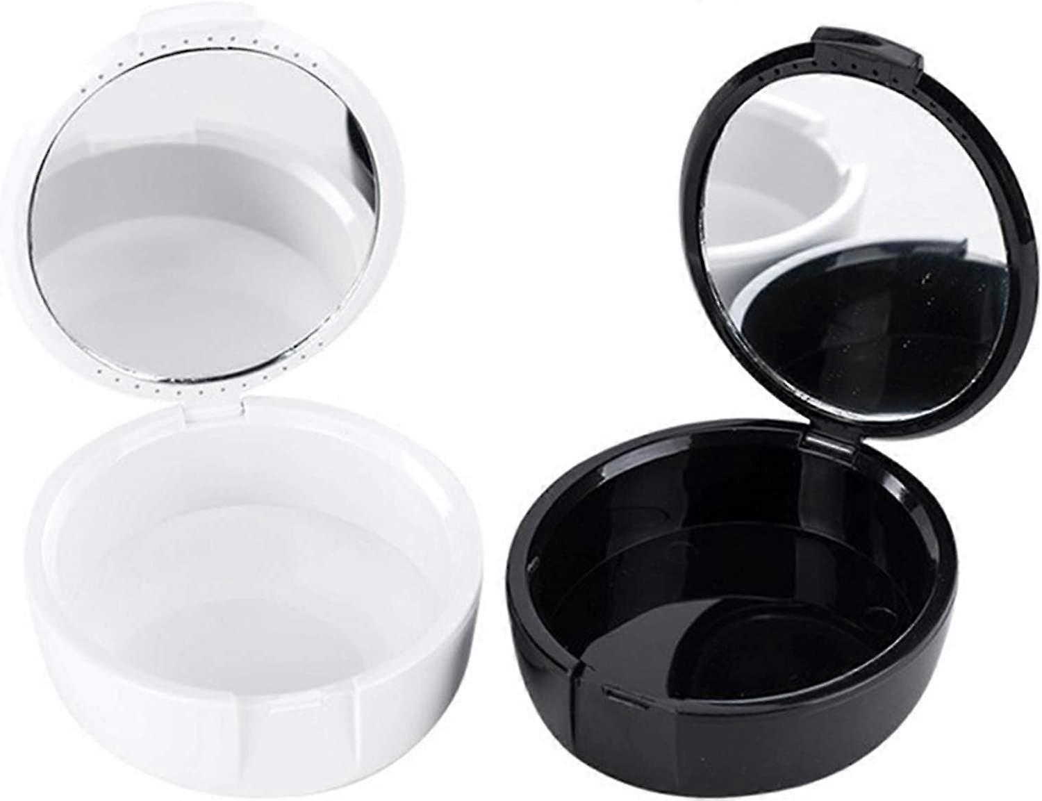 ZK- 2-Piece Denture Box, Healthy Orthodontic Denture Box Storage Rack, Portable Denture Box (Black, White)