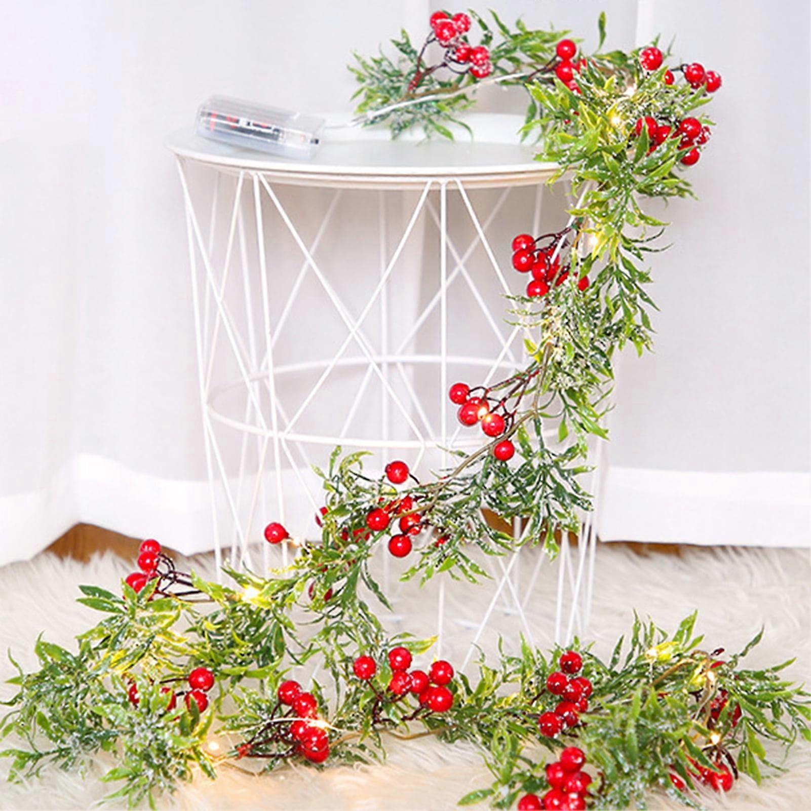 ZOELNIC Battery-Powered Snow Branches & Red Berries String Lights Garland for Christmas, Bedroom, Indoor/Outdoor, Garden, Fireplace, Xmas Tree, New