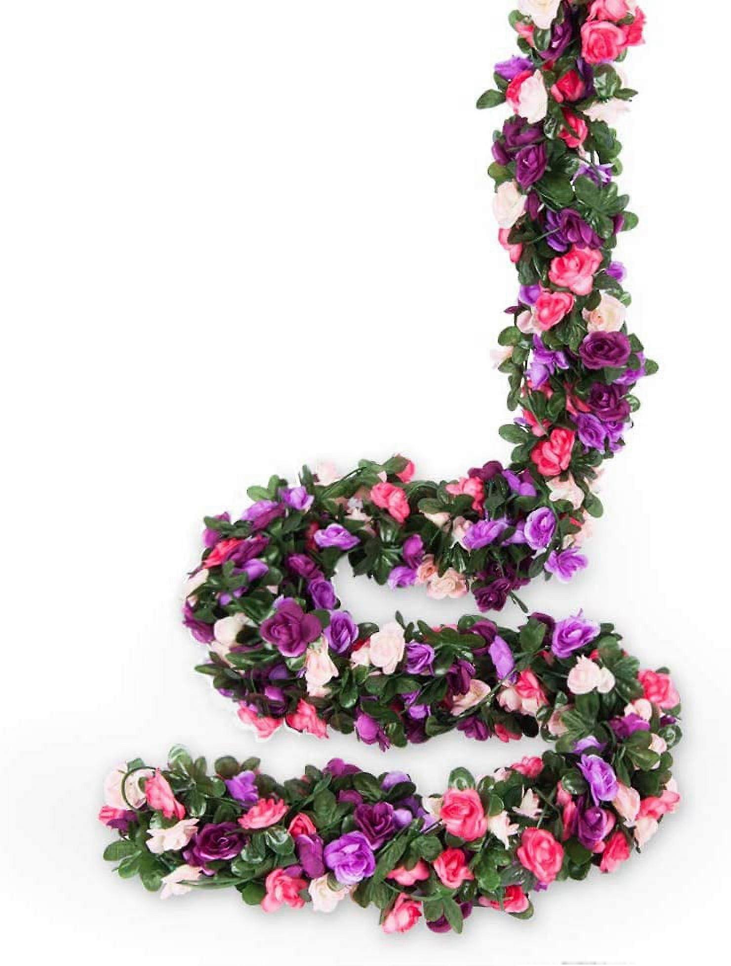 ZOELNIC 8PACK 66ft Artificial Flower Garland Fake Rose Vine Hanging Ivy for Home, Hotel, Wedding, Party, Garden (Purple+Pink)