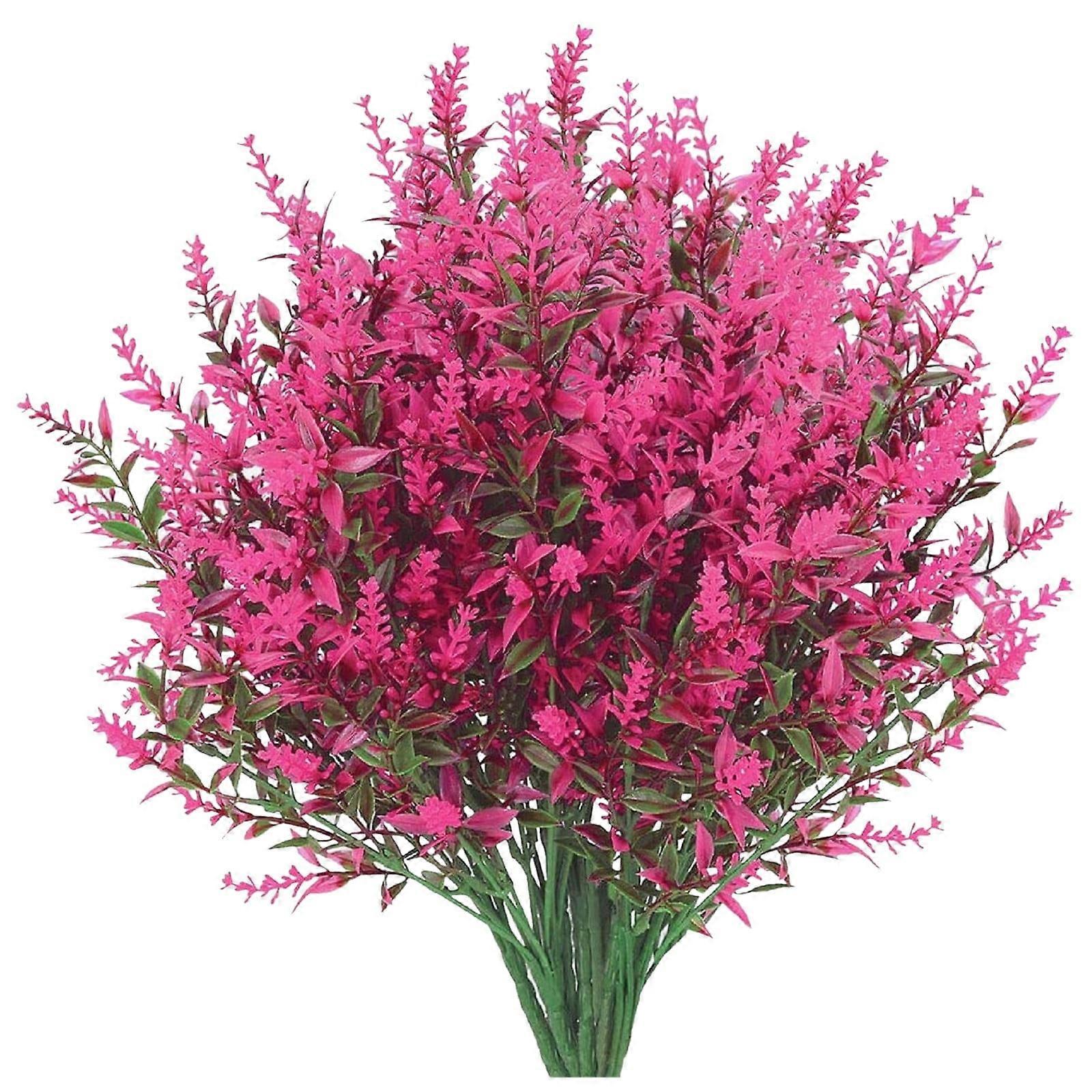 ZOELNIC 8PCS Artificial Lavender Flowers UV Resistant Outdoor Decoration for Porch Window Frame Rose Red Pink