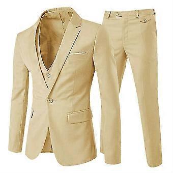 ZZY-メンズスーツ3ピースウェディングビジネスパーティー無地スリムワンボタンスーツ(ブレザー+ベスト+パンツ)