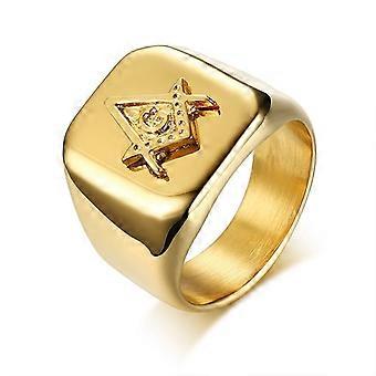Vnoxメンズポリッシュステンレススチールビッグリングゴールドカラーフリーメーソンスクエアリングパーティーリング男性ジュエリーセット